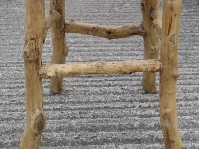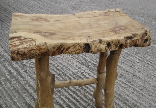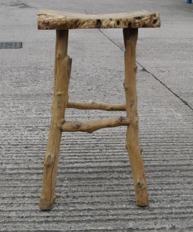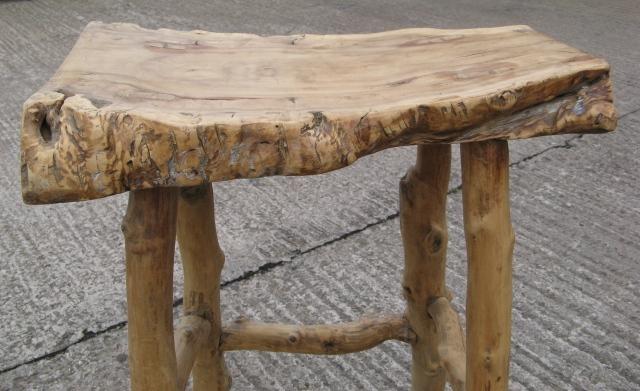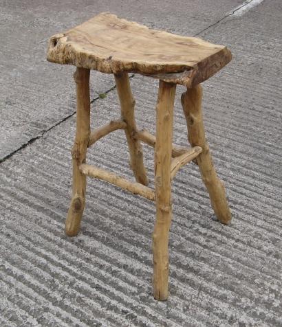 Tall stool made of naturally shaped wood from the date tree. The stool has a natural finish.