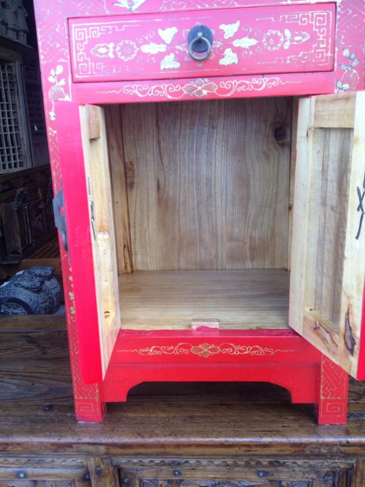 Bright red lacquered bedside cabinet (40x32x60h)cm