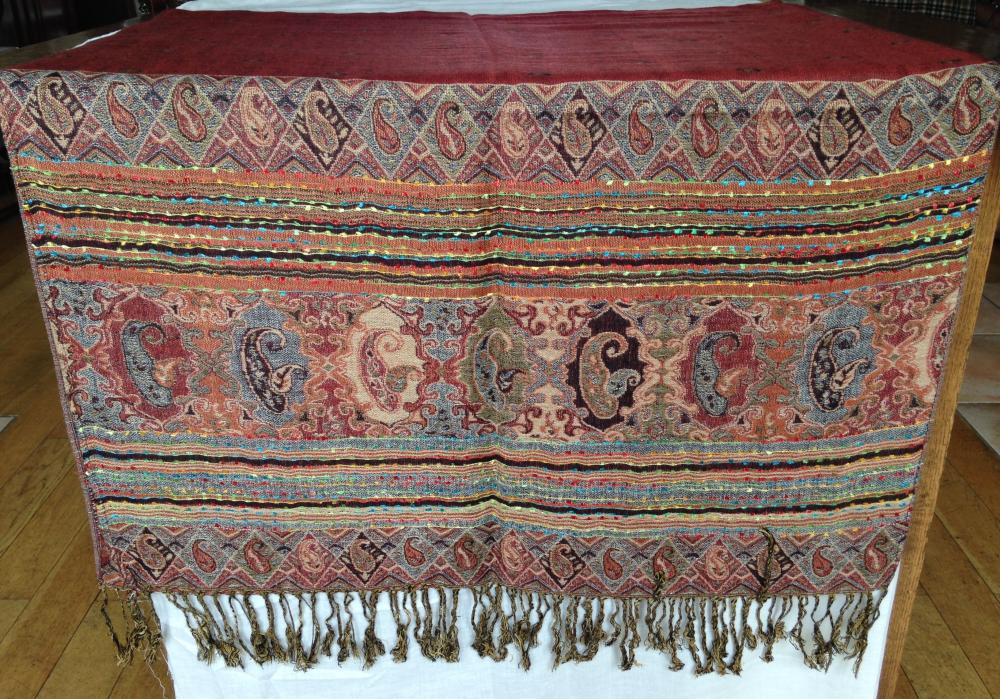 198cm long (including tassles) x 69cm wide