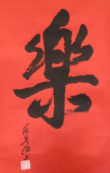 Chinese character - le, meaning Happiness, signed by calligrapher Xu Yingjie