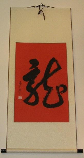 Chinese character, Lóng, meaning dragon. Signed by calligrapher Xu Yingjie