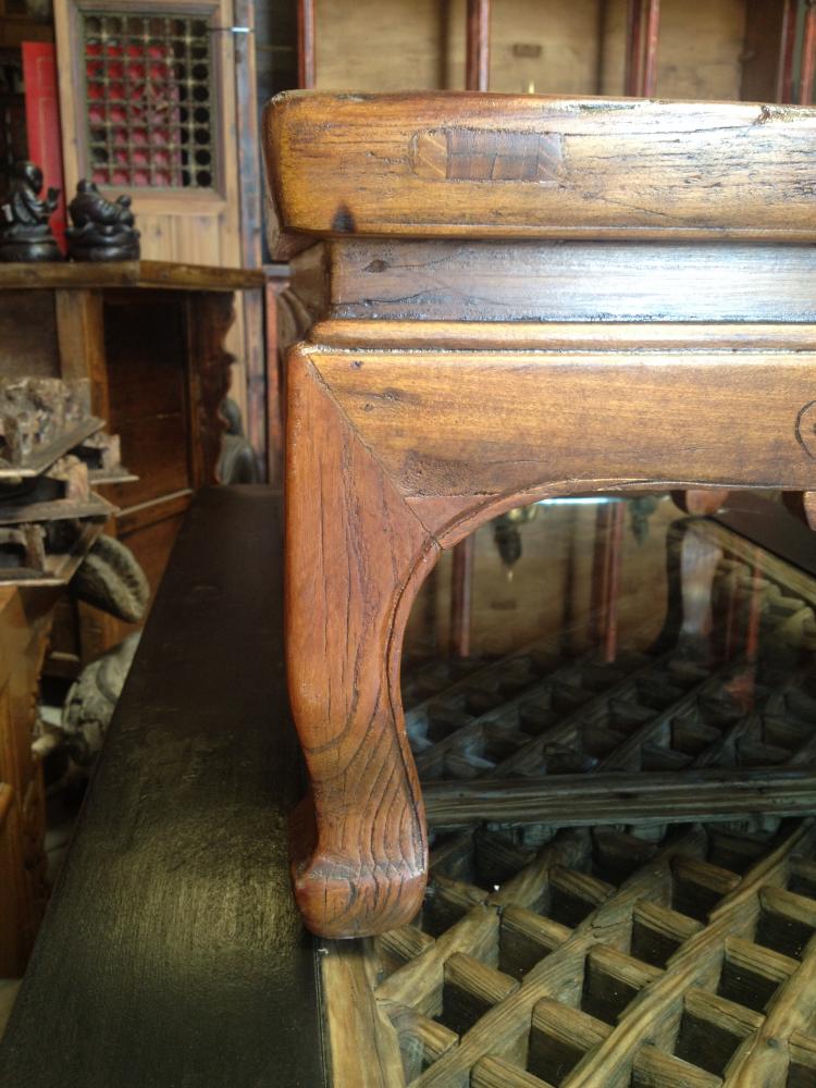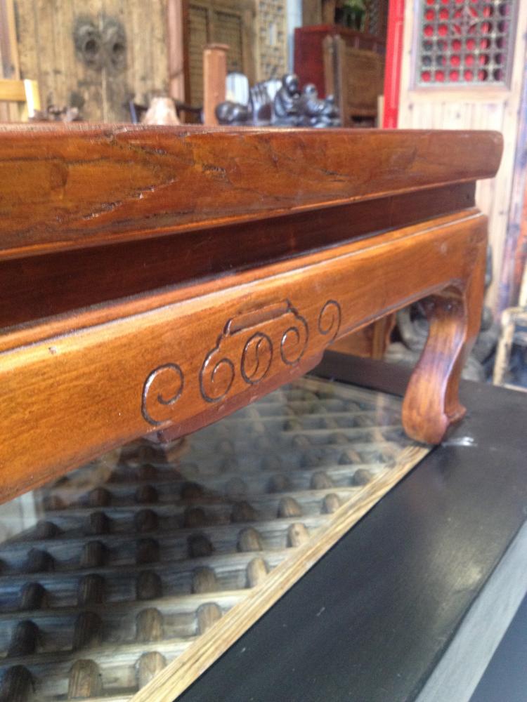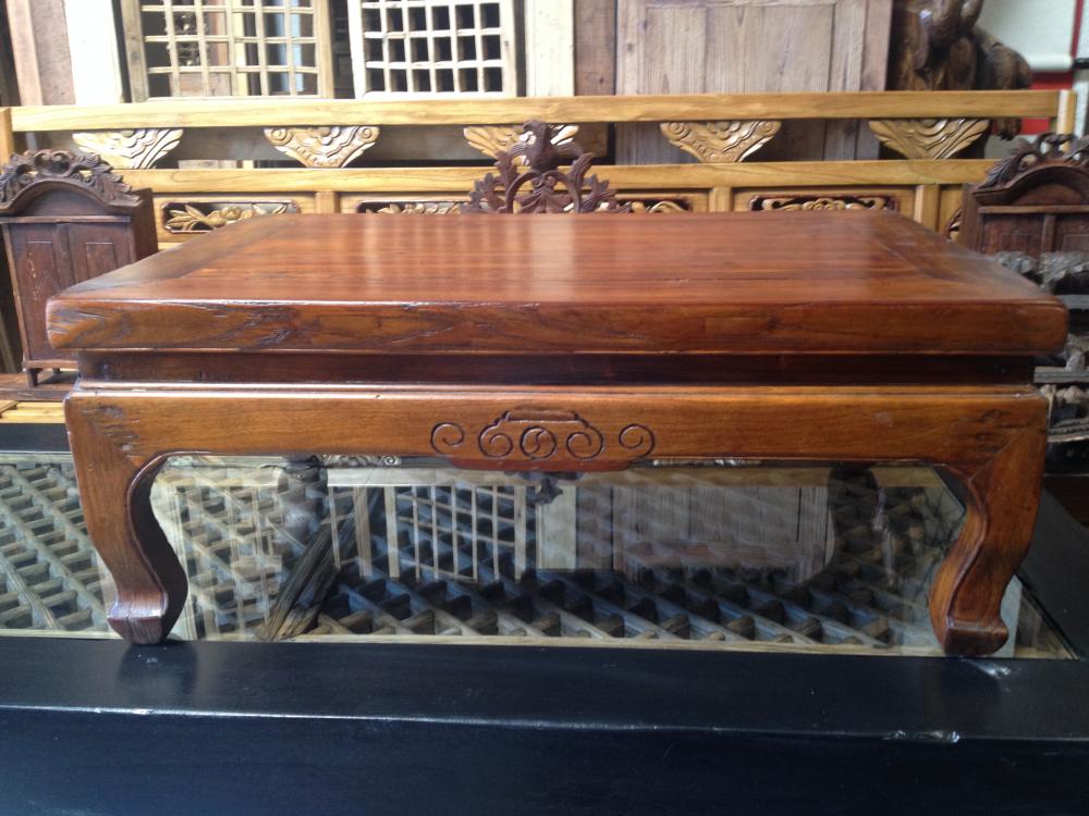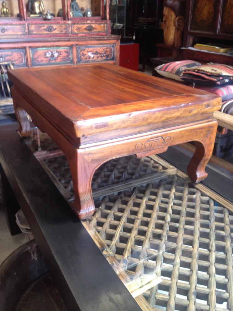 Low Kang table from north China. In northern Chinese dialect Kang means bed. During the day the bed clothes would have been stripped off and such a table would have been placed on the bed.