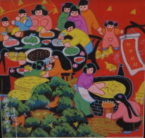 Farmers painting - original Chinese vibrant watercolour painting 36 x 28 cm (framed)