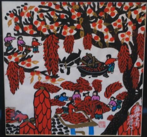 Farmers painting - original Chinese vibrant watercolour painting 36 x 28 cm (framed)