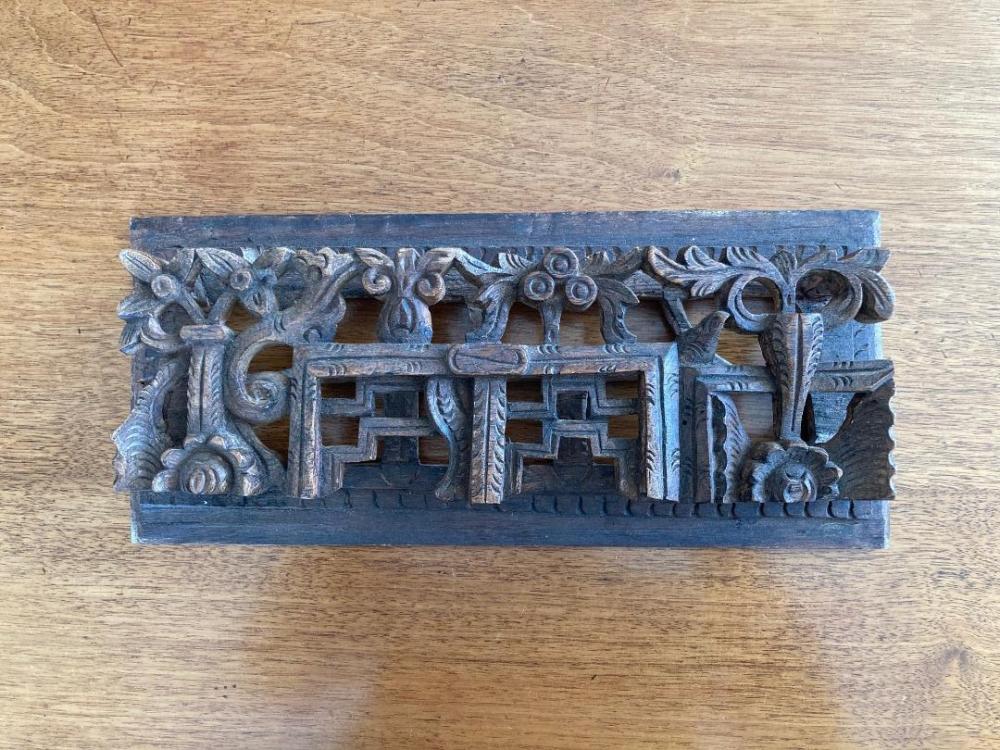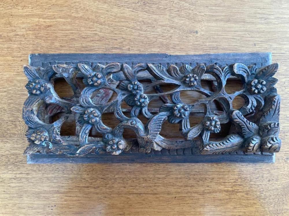 Hand carved wood panels, reclaimed from an old (1950's) Indonesian day bed. brilliant craftsmanship. Each panel carved out of sinle peice of wood.