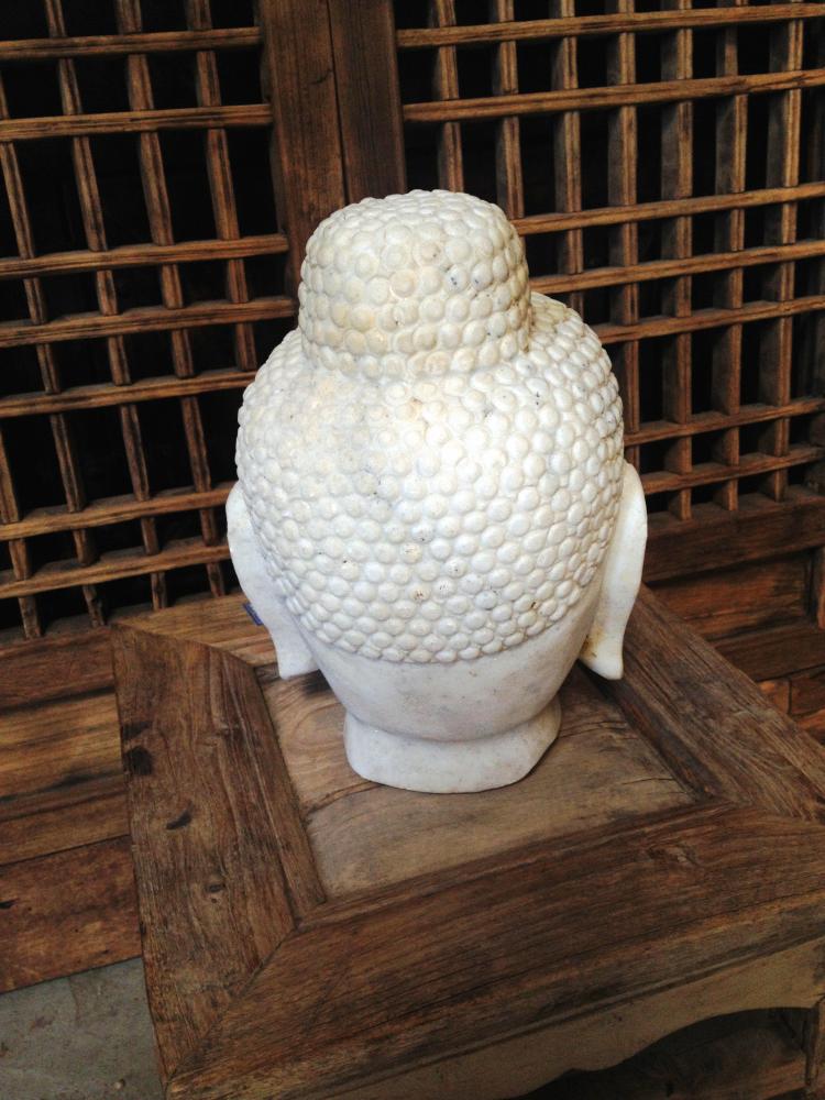 hand carved white stone Buddha head