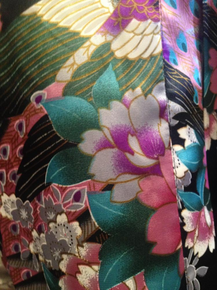 Artificial silk; easy to maintain (does not require dry cleaning) just a hand wash or low temperature machine wash and light iron is all that is needed.