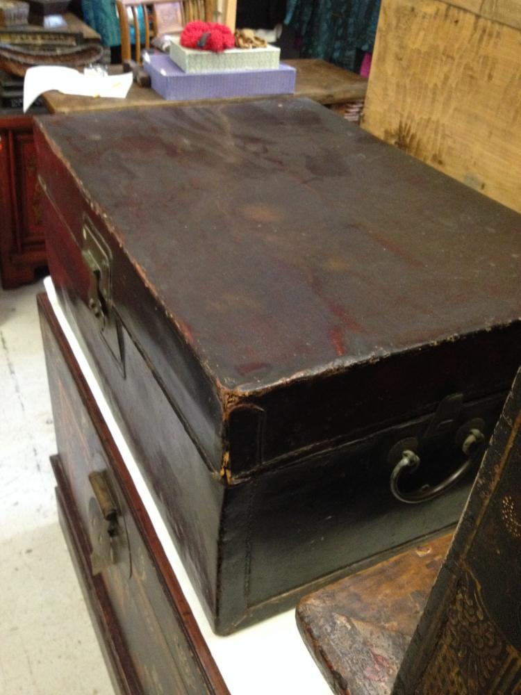 Chinese leather trunk in original unrestored condition