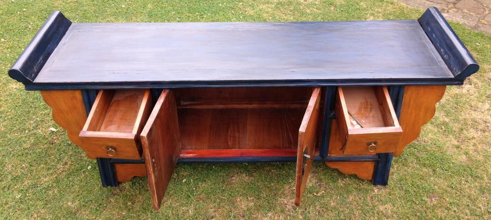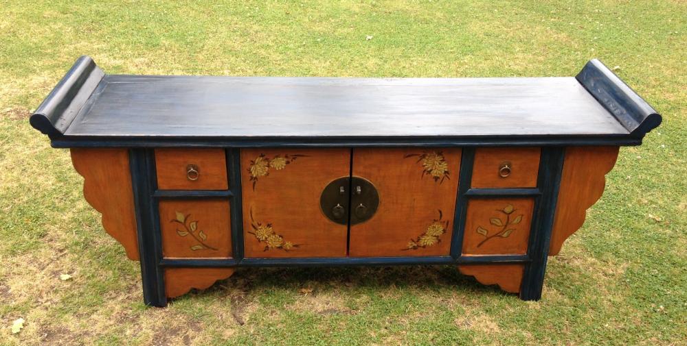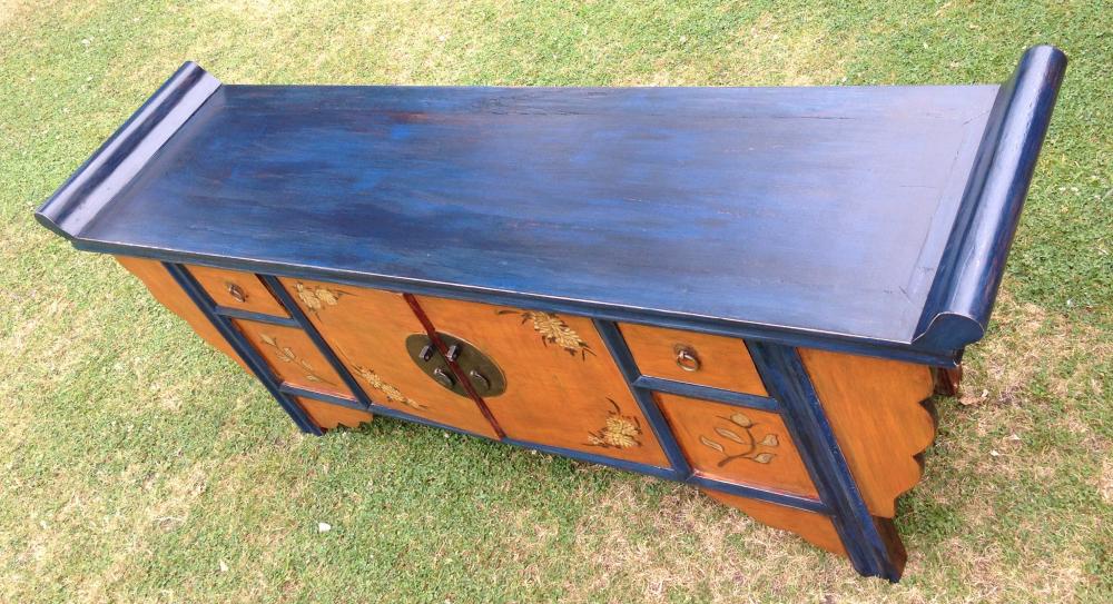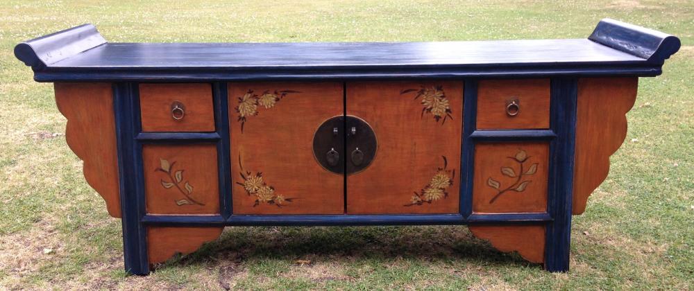 Hand painted, double drawer, double door low(TV) cabinet 146Wx38Dx54Hcm