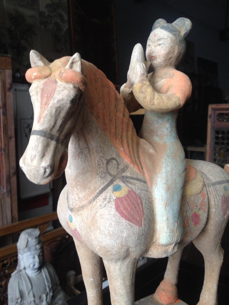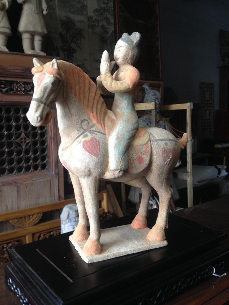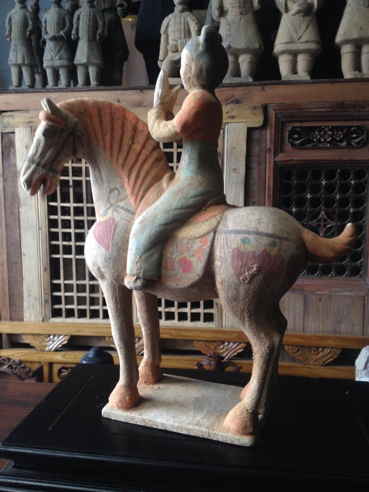 Hand made replica of ceramic horse with musician rider from the Tang dynasty (618 -907)